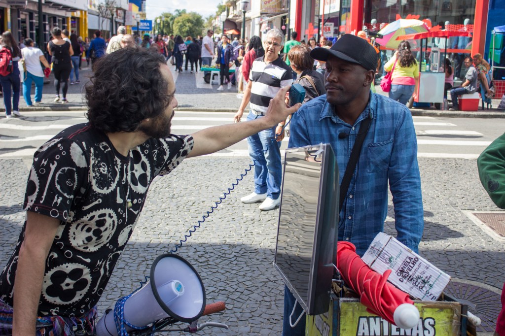 Improviso. Olhares atentos para o que acontece. As histórias acontecem ali ao nosso olhar, prontas para serem contadas. É no relance. No acontecimento ali à nossa frente. Microhistórias que duram a travessia de uma faixa de pedestres, o tempo de virar a cabeça, os segundos que da espera de um sinal, ou na interrupção do encontro com a pessoa transeunte. Esse percursos se dá ao acaso do encontro inesperado. Quando menos se espera a história que acontece ali vira narrativa do contador-ciclista. Esta apresentação aconteceu no 5o Festival Nacional de Contadores de Histórias de Ponta Grossa – PR em junho de 2019.