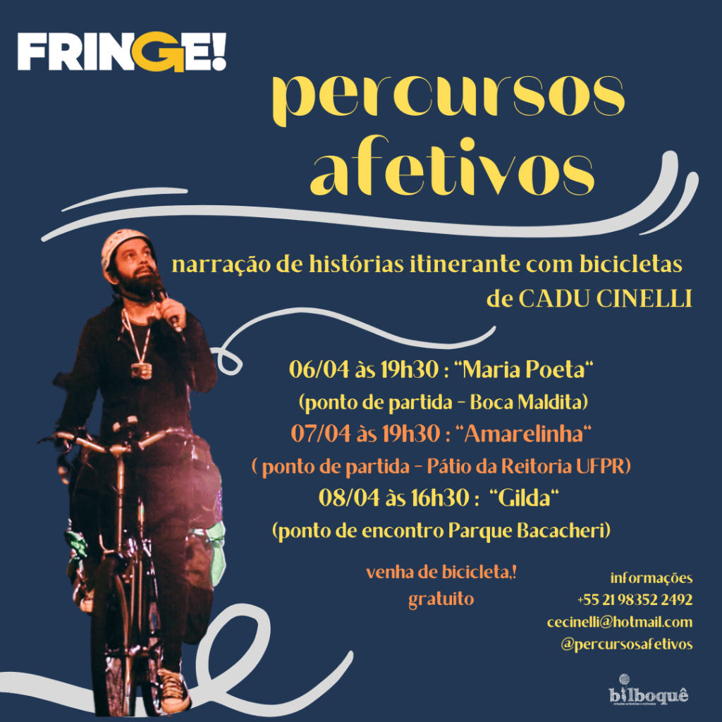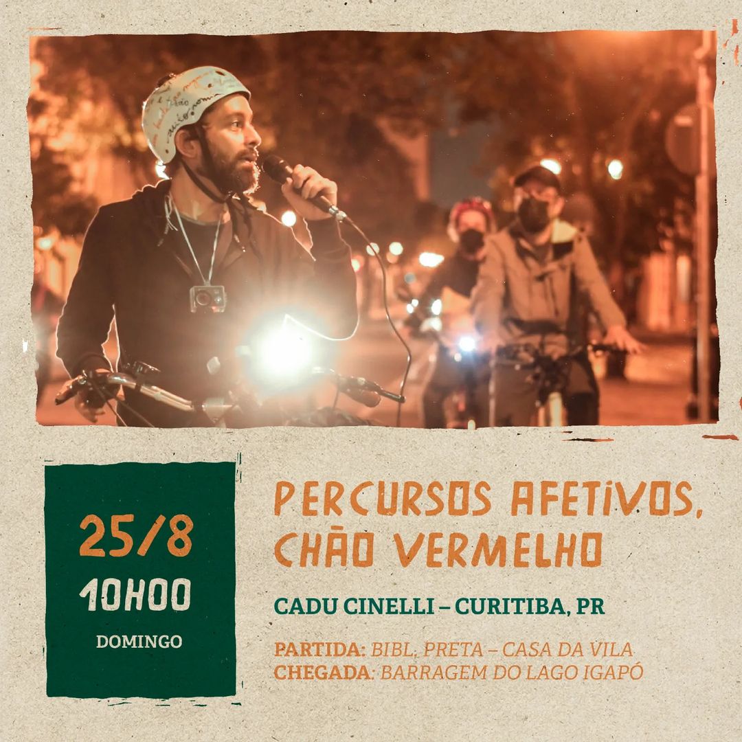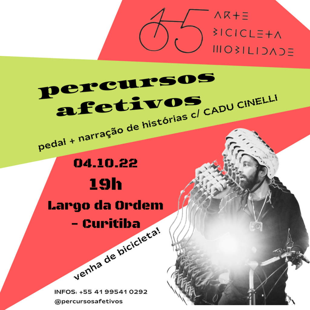 21/06 Participação dos Percursos Afetivos na disciplina Corpo, Teatralidade e Educação no Programa de Pós Graduação em Educação da UFPR às 14h com partida da Praça de Bolso de Ciclista.