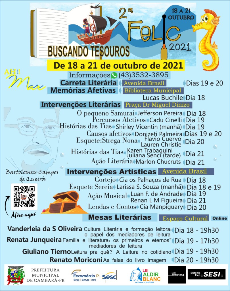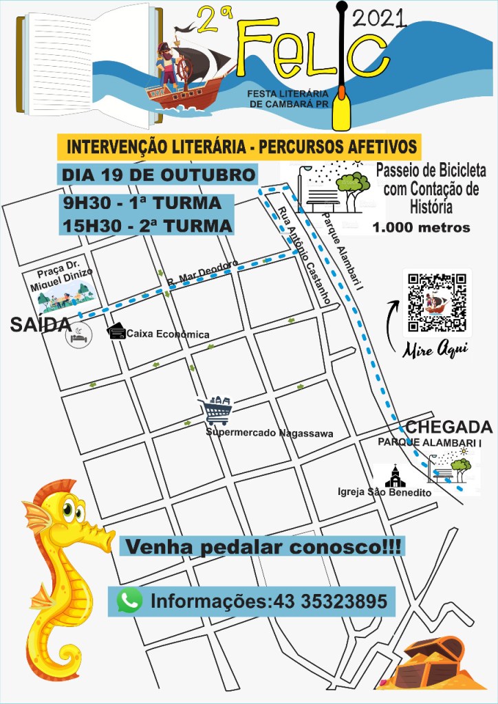 dia 19 de Out – 09h30 e 15h30 – apresentação presencial no FELIC – Festa Literária de Cambará – PR