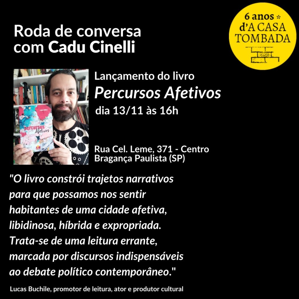13/11 – às 16h – Lançamento do livro do Percursos Afetivos na Casa Tombada em Bragança Paulista/SP