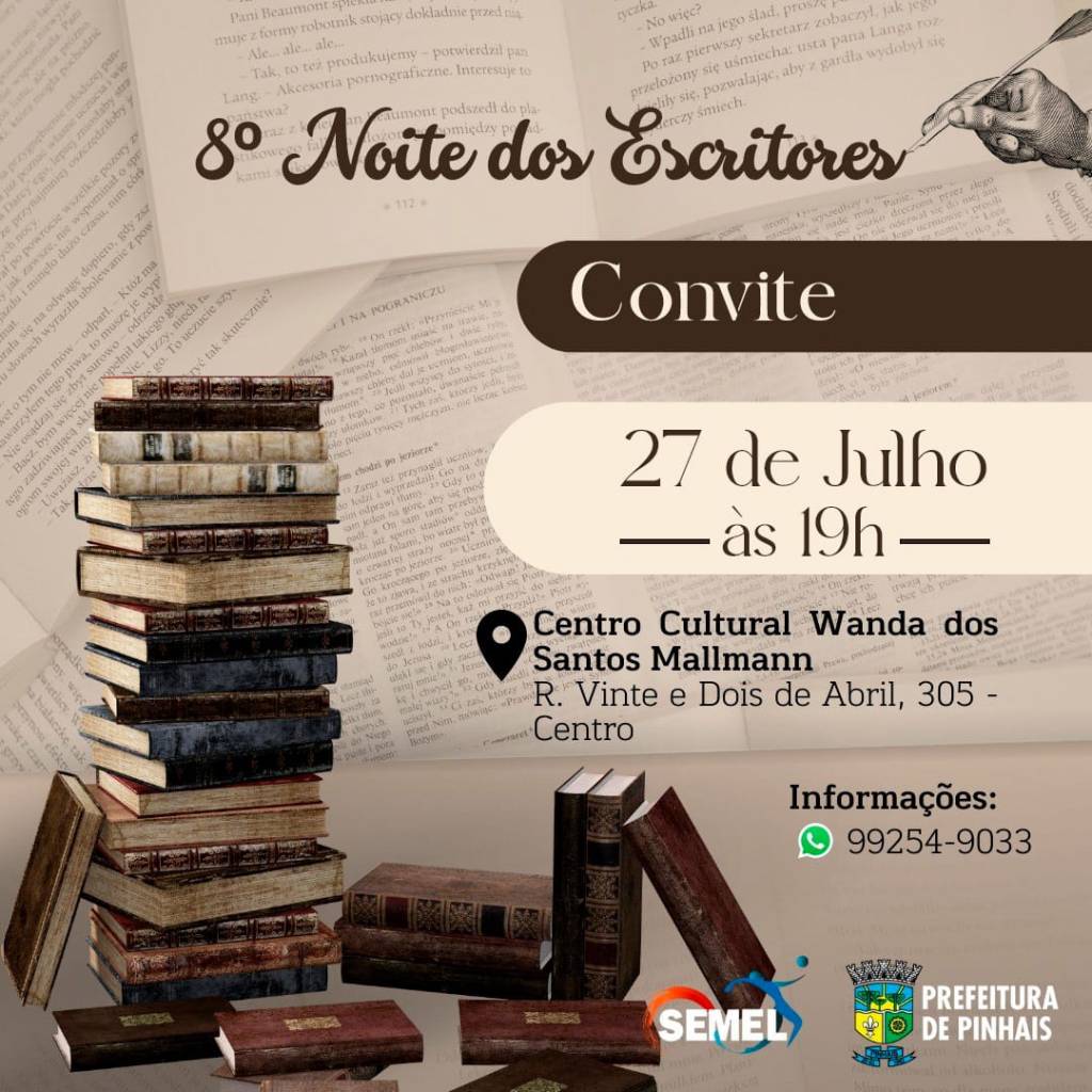 Participação da 8a Noite dos Escritores da Prefeitura de Pinhais no dia 27 de julho às 19h.