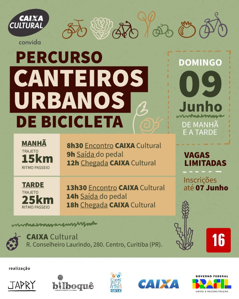 09/06 às 09h e 14h – primeiro JAPRY – Percurso CANTEIROS URBANOS de Bicicleta pela CAIXA Cultural Curitiba e Programa CAIXA Gente Arteira
