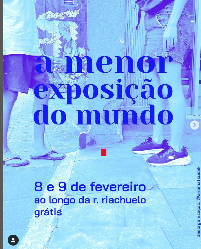 08 e 09/02 – participação da Menor Exposição do Mundo no Festival Ocupa Riachuelo com os Percursos Afetivos ((sonoros)) espalhados pela Rua do Riachuelo em Curitiba.